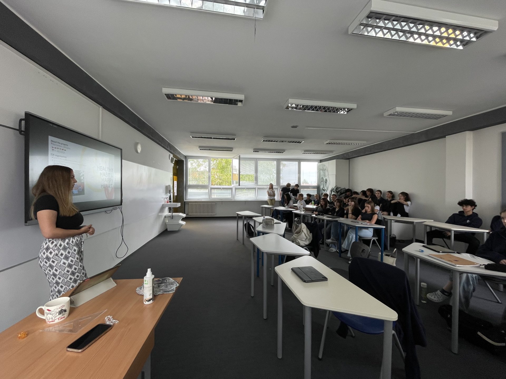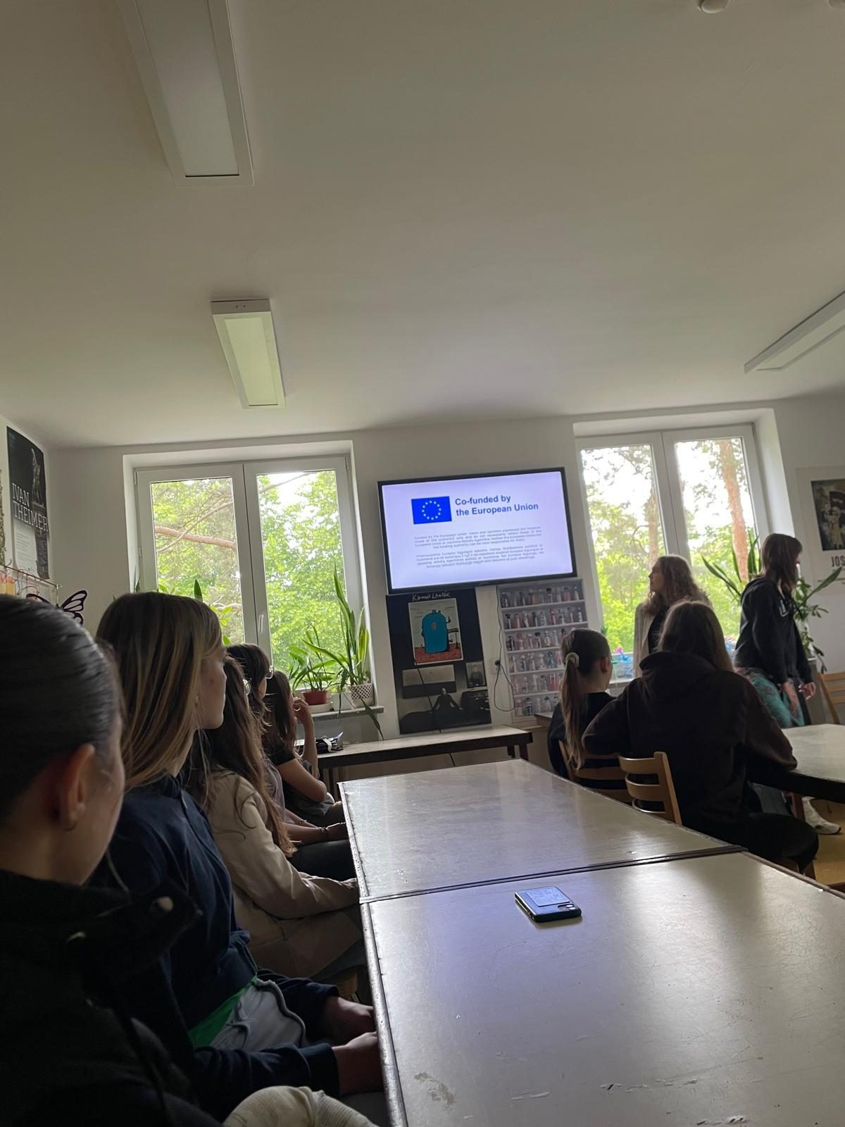 Dissemination by Agata at Gymnázium Jána Baltazára Magina for 25 classmates, where she presented E29 network, shared her experience, showed the activity video and blogpost, and explained how to join future EU-funded activities.