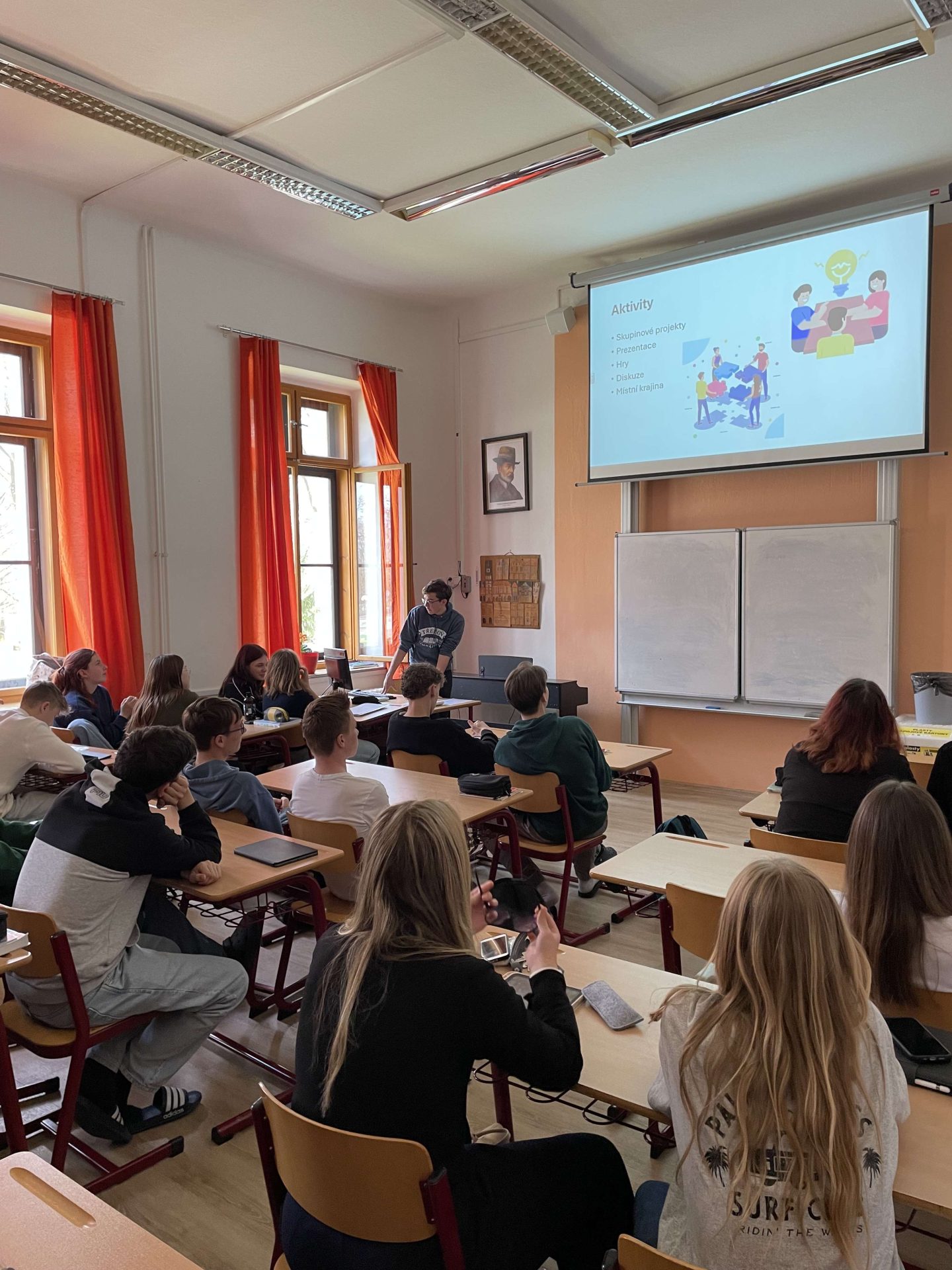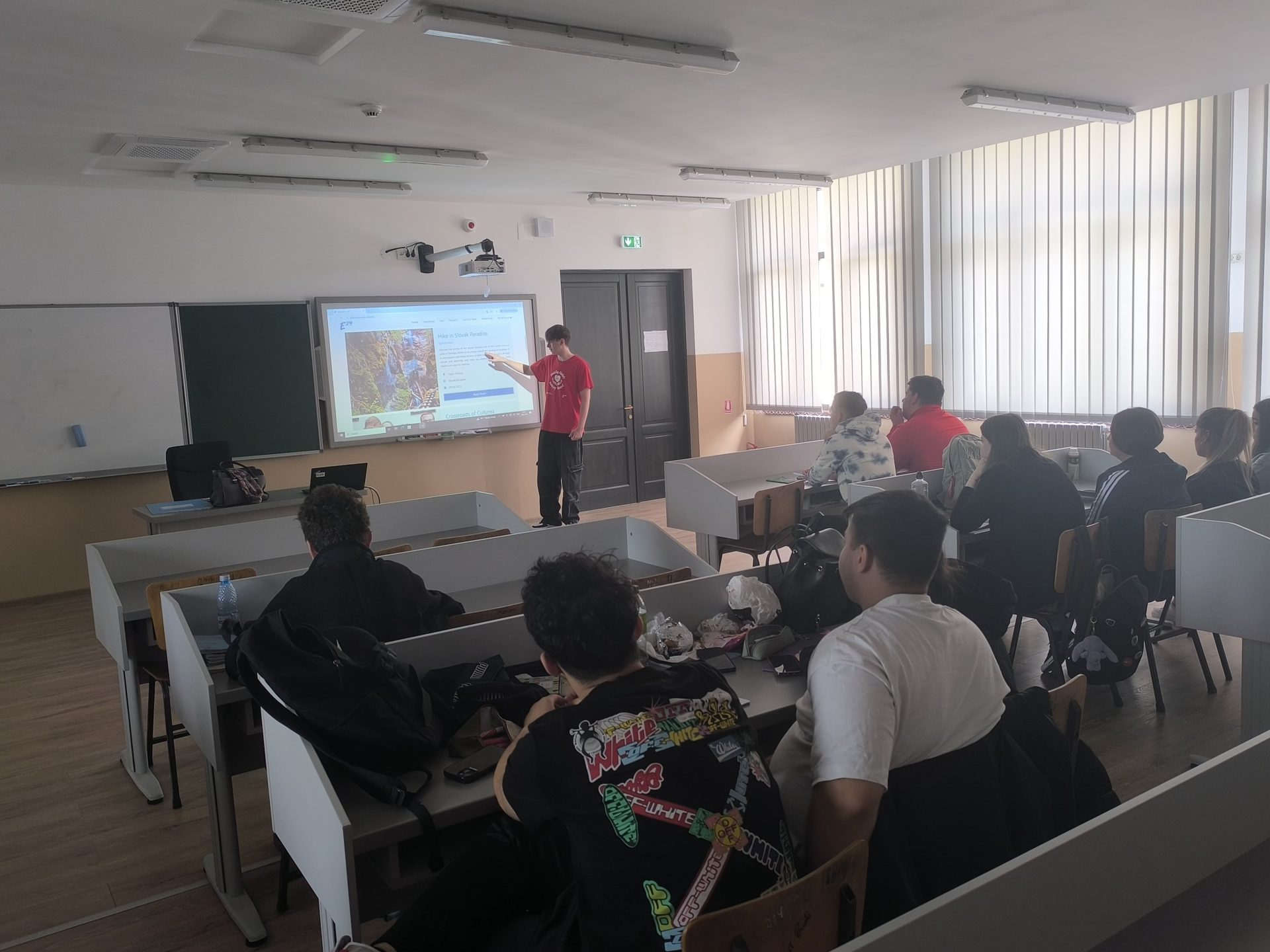 Dissemination by Jakub at Smíchovská Střední Průmyslová Škola a Gymnázium, where he presented the youth exchange to 20 classmates, sharing highlights, photos from the exchange, and encouraging future participation.