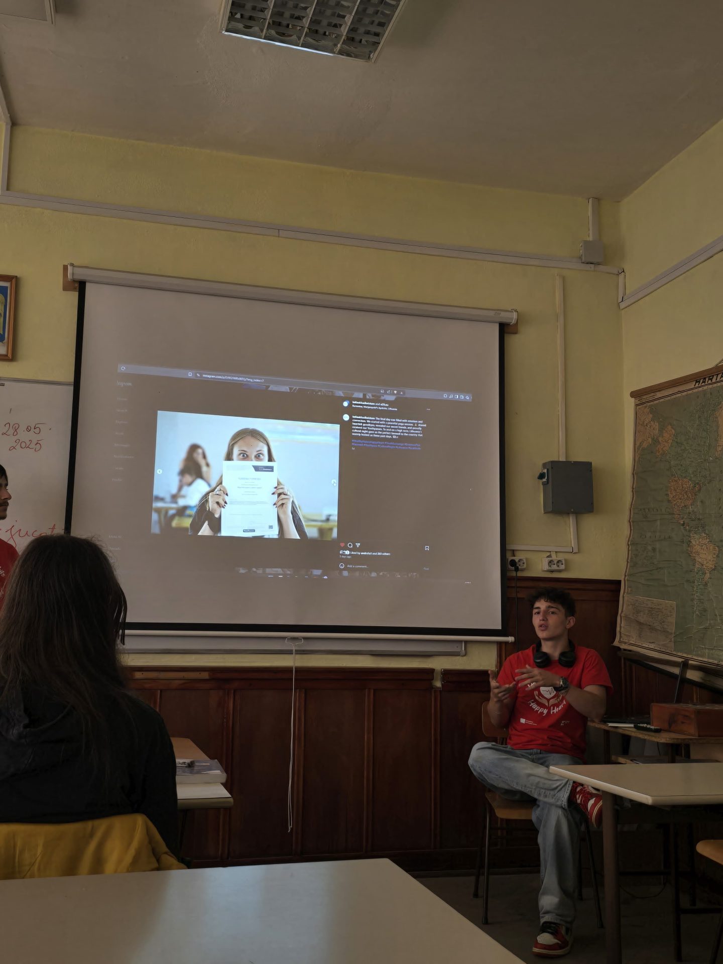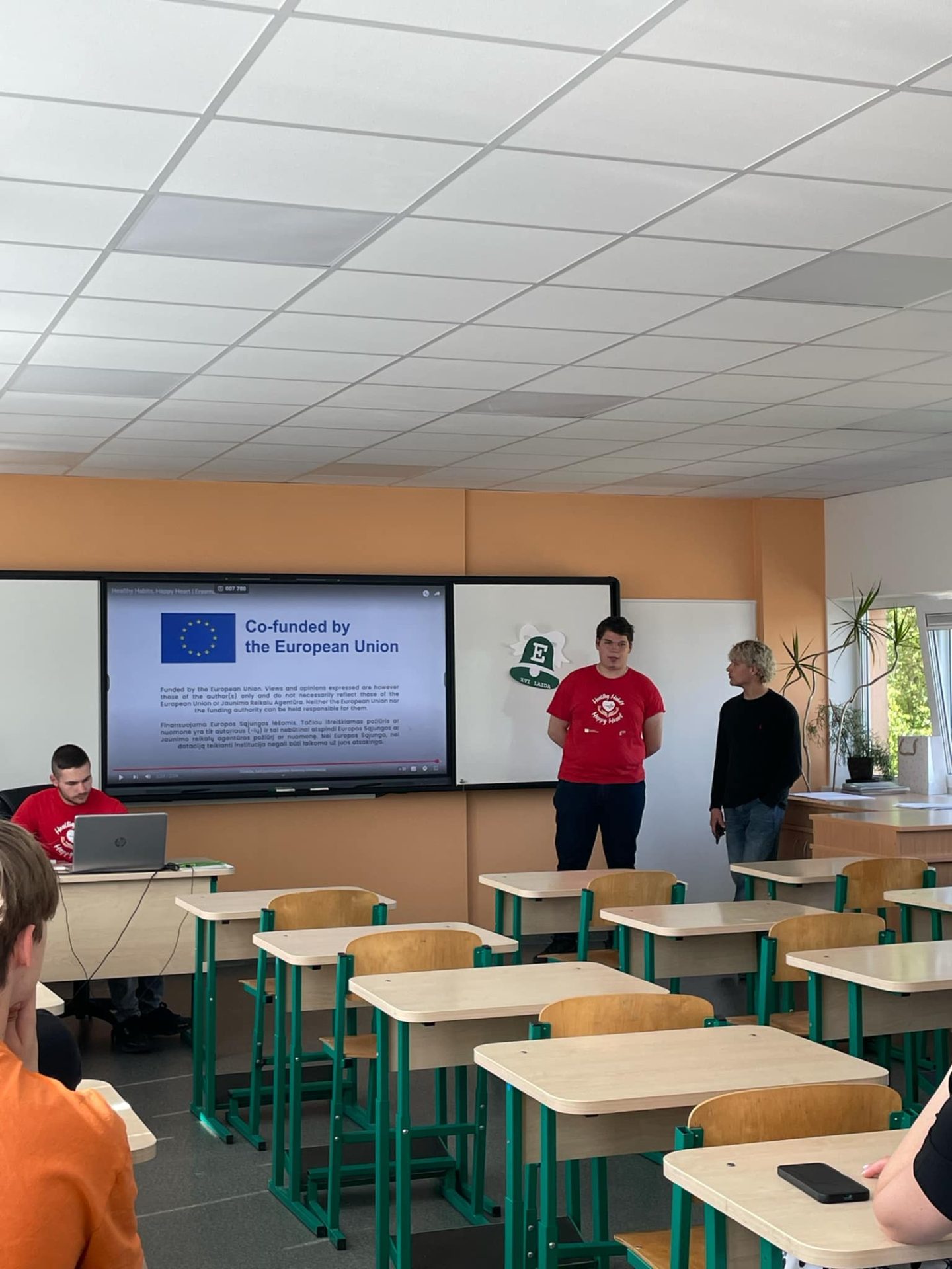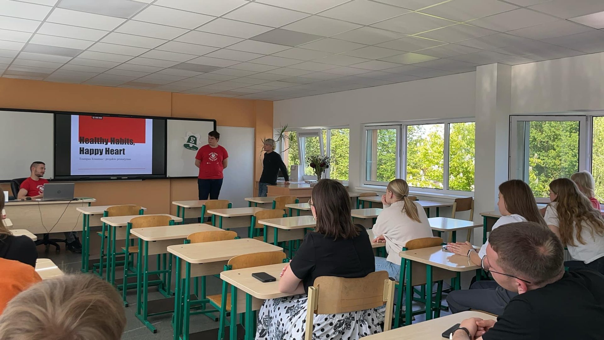 Dissemination held by Oleksandr and Emilis in Graziskiu Gimnazija, where they presented the Youth Exchange Healthy Habits, Happy Heart to 15 classmates, showed the activity video, and shared insights about the experience, activities, and themes of the activity.