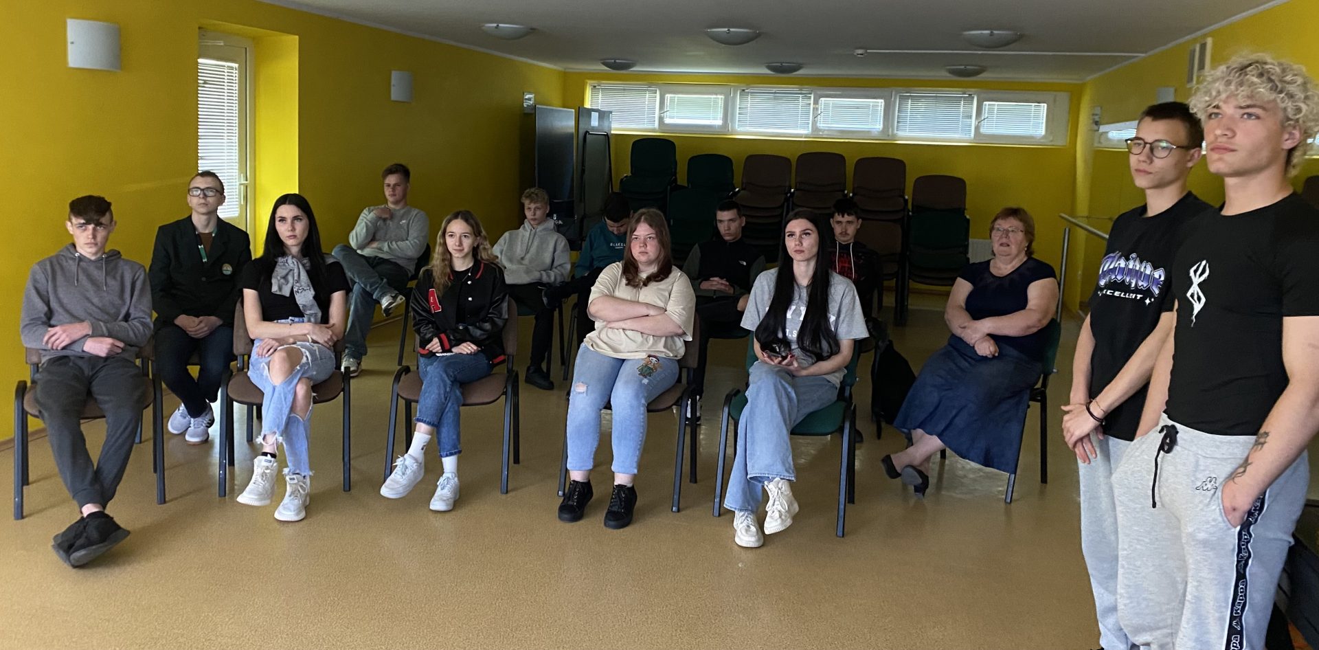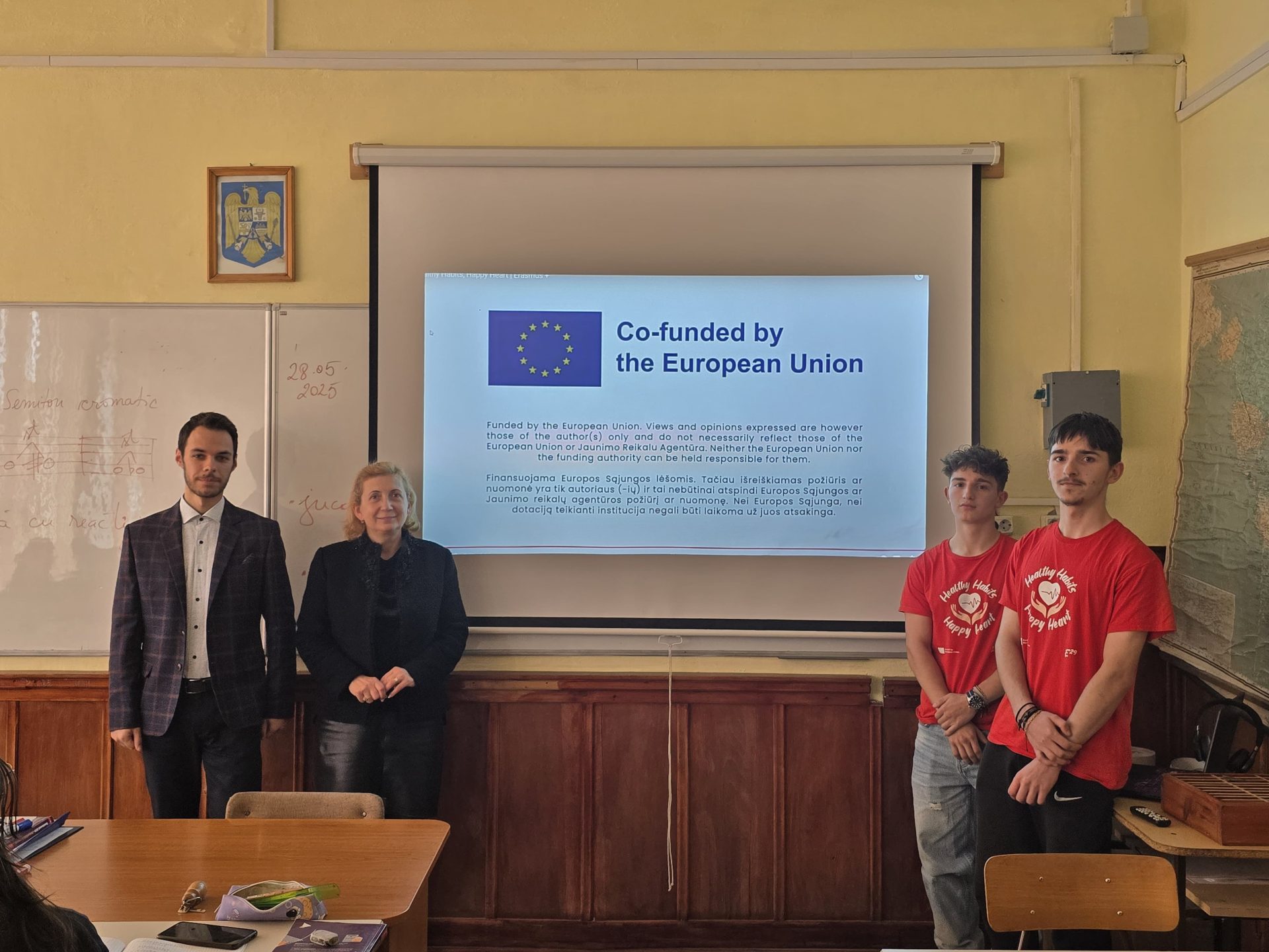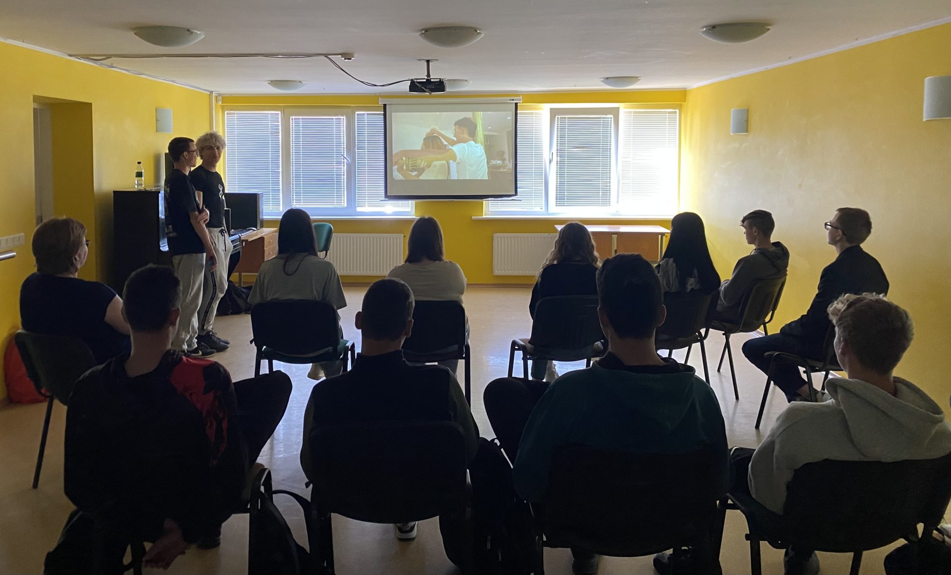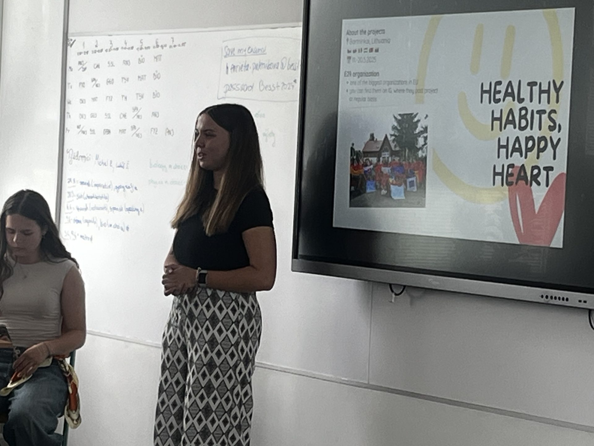 Dissemination held by Oleksandr and Emilis in Graziskiu Gimnazija, where they presented the Youth Exchange Healthy Habits, Happy Heart to 15 classmates, showed the activity video, and shared insights about the experience, activities, and themes of the activity.
