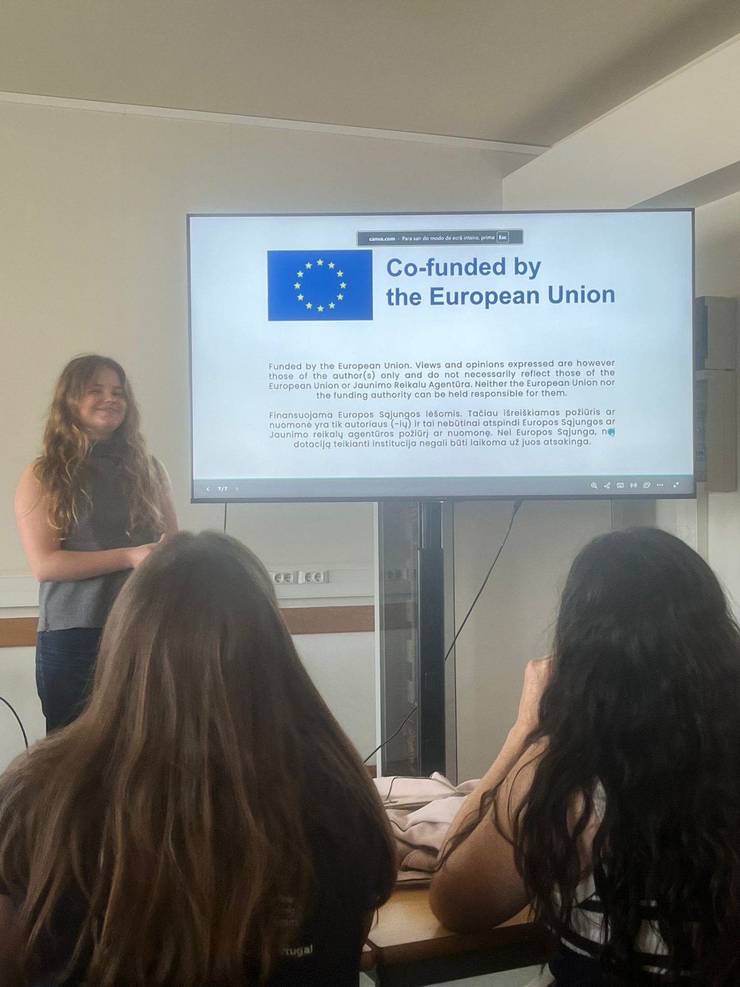 Dissemination by Nelly at Private Bilingual Gymnasium BESST for 25 classmates, where she shared her Erasmus+ experience in Lithuania through photos, a video, and a Q&A session that sparked strong interest in future opportunities.