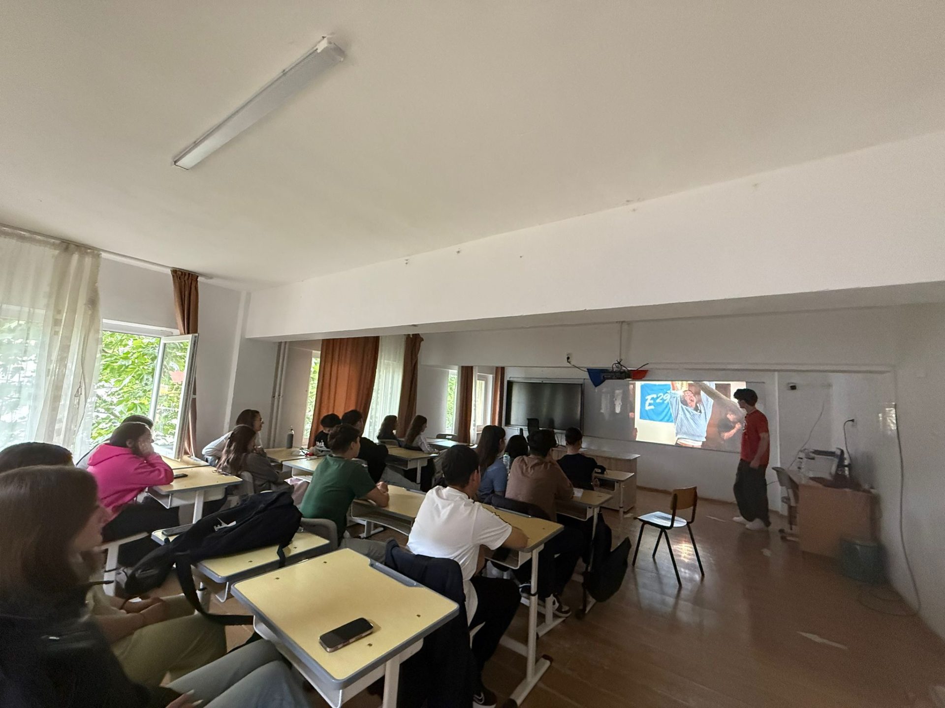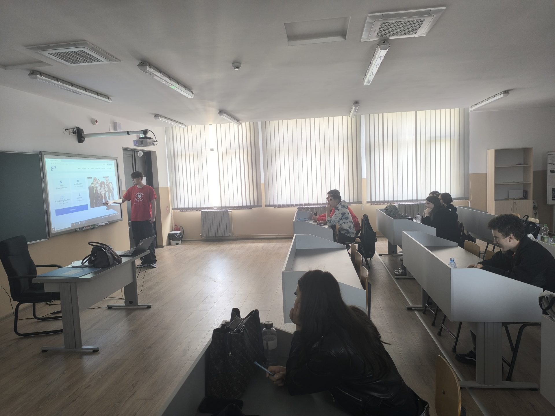 Dissemination held by Alexandru in Liceul Teoretic Nicolae Titulescu, where he presented the Erasmus+ activity to 20 classmates. During the dissemination, they discussed E29 network and paused the introductory video at key moments to explain the activities in detail and provide further context on the objectives and outcomes.