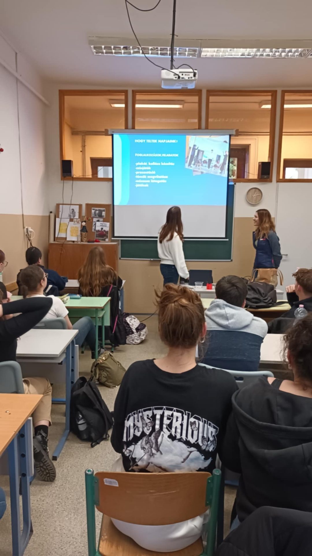 Dissemination held by Hanna and Alexandra at Rackevei Ady Endre Grammar School, for 30 schoolmates.