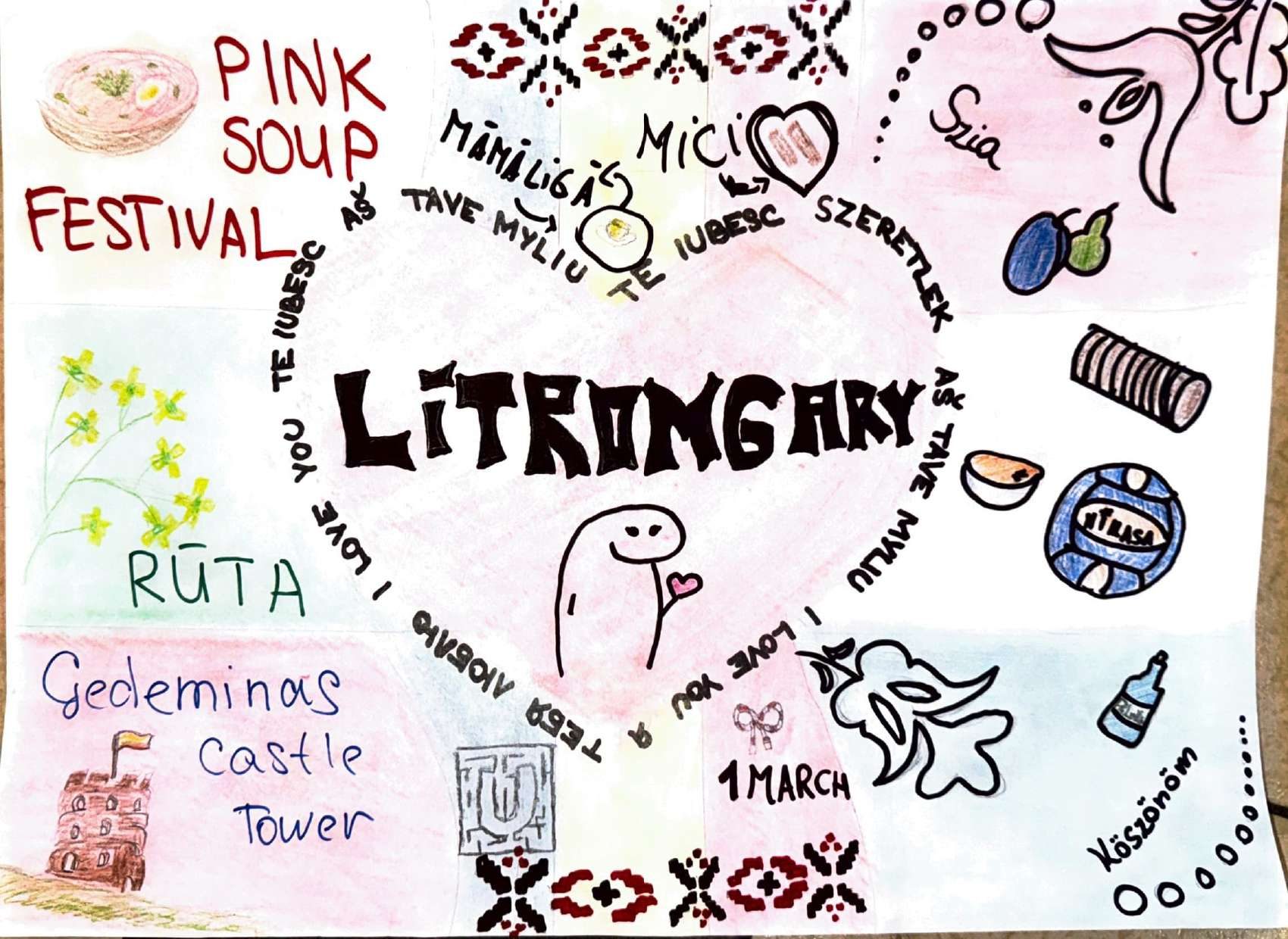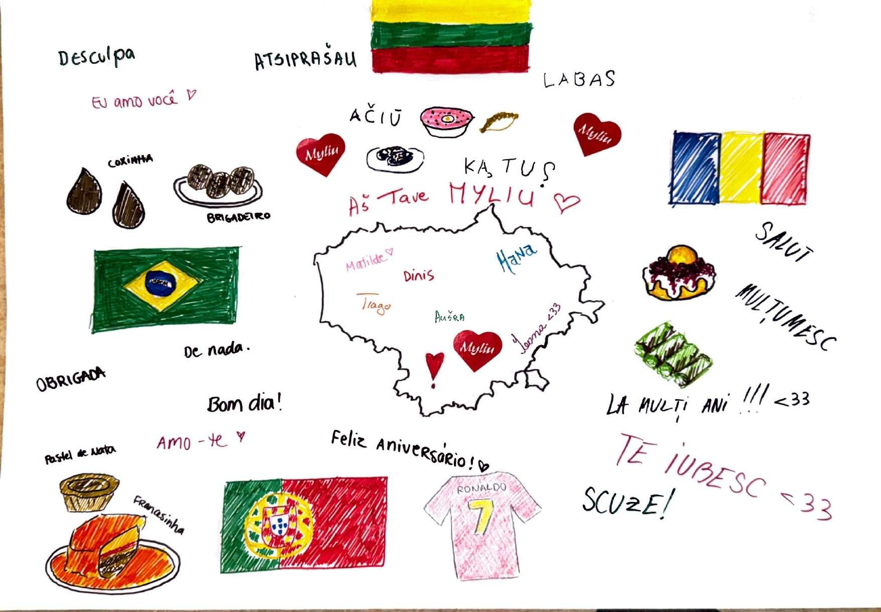 Participants created shared artworks that blended symbols from their home countries, celebrating cultural diversity through collaborative visual storytelling.